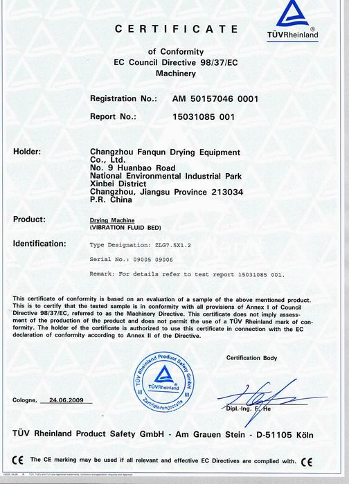 2009年6月底,經公司領導和員工的全體努力,公司產品流化床順利通過CE認證,有力推動我公司產品出口歐洲,加快走向國際市場的步伐。